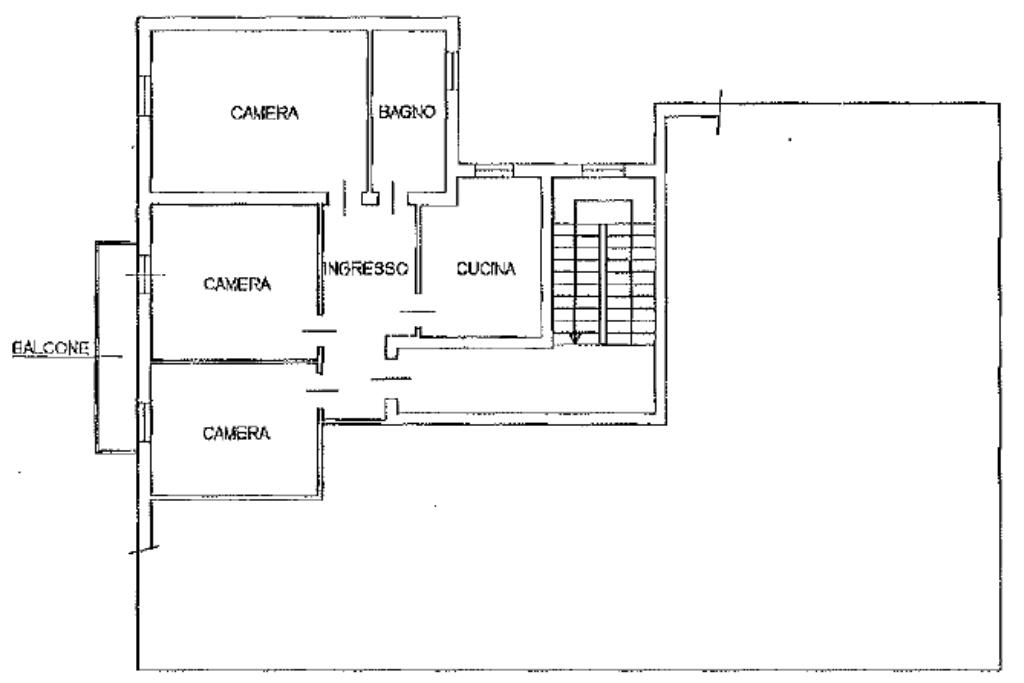 L’appartamento è composto da soggiorno, cucina, due camere da letto, balcone e bagno con finestra. La posizione all’ultimo piano garantisce ottima luminosità e privacy.