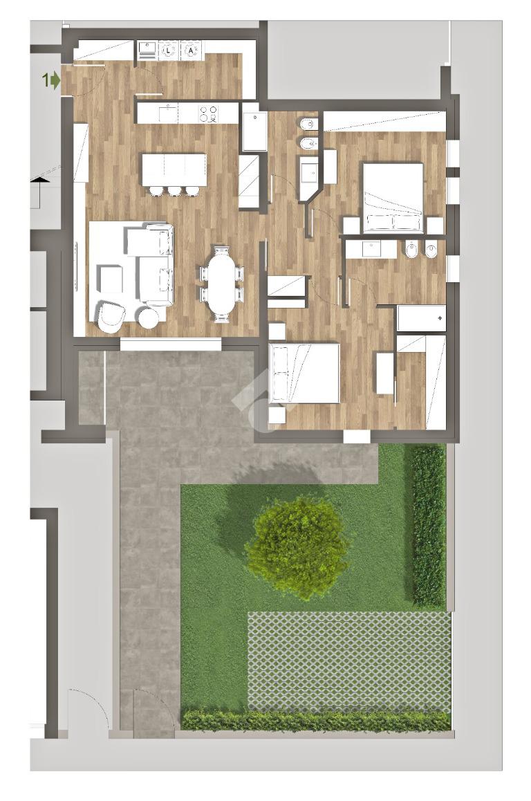 RESIDENZE DEL SORBO: Radici Del Sorbo. Nel comune di Sorbolo, proponiamo un immobile signorile di nuova costruzione, situato al piano terra e caratterizzato da un ampio giardino privato. Con una superficie di 141 mq, l'appartamento offre spazi ben distribuiti: due camere da letto, due bagni, un soggiorno luminoso e una cucina moderna. Il portico aggiunge un tocco di eleganza e funzionalità, ideale per momenti di relax all'aperto. La costruzione vanta una facciata condominiale rasata al civile con cappotto in fibra di vetro, garantendo un eccellente isolamento termico. Il sistema di riscaldamento e raffrescamento a pavimento è alimentato da pannelli fotovoltaici in pompa di calore, assicurando efficienza energetica e comfort. L'immobile include un posto auto riservato. Un'opportunità unica per chi cerca una residenza moderna e sostenibile in una zona tranquilla.