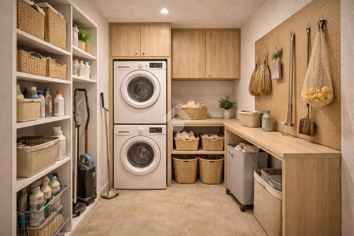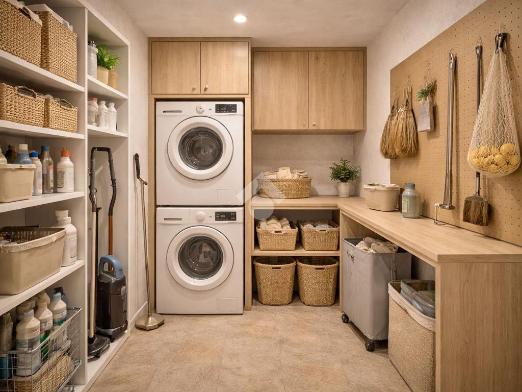 Sempre al piano è presente una loggia di servizio e l’accesso al collegamento interno per il livello superiore.