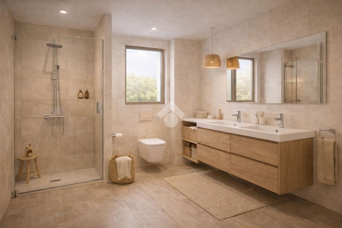 • Pavimenti in gres porcellanato di grande formato o parquet nella zona notte